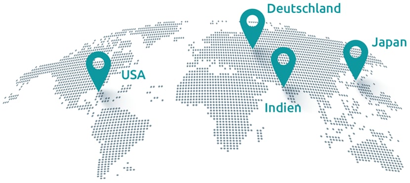in 4 Ländern – Deutschland, USA, Indien, Japan